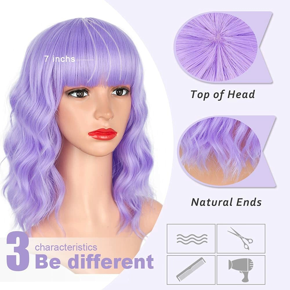 ❤️【Bonito color】El color es muy bonito. Es lila llamativo, estilo súper lindo. Te sorprenderá muy agradablemente la textura del cabello y el brillo. La peluca colorida puede ser un poco brillante para ti. No te preocupes. El champú seco o polvo es bueno para eliminar el brillo de las pelucas. Te encantará la forma en que se ve.